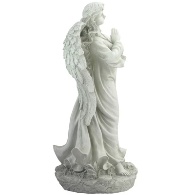 This angel statue is the perfect addition to your garden decor Features a beautiful angel holding her hands in prayer with roses next to her feetFor indoor or outdoor use Dimensions: 24.5″H x 10.25″W x 12.5″DMaterial(s): polyresin