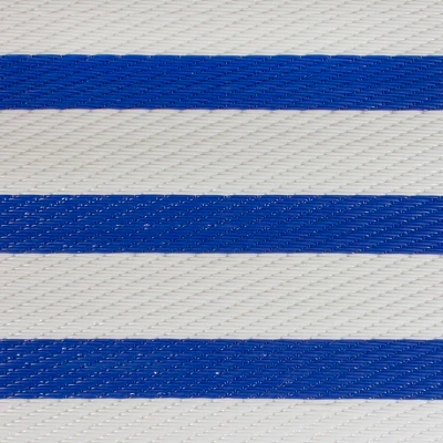 Our blue and white striped rug features a textured weave that’s super comfortable underfoot. It is mold and mildew-resistant and built to withstand color fading from the sun. It has been designed to hold up exceptionally well in high-traffic areas, whether it is used indoor or outdoor. The flat weave design of this rug melds style with durability, making it the perfect accessory piece to any porch, poolside deck, backyard patio, or indoor space that needs an easy-to-care-for rug.Product features:Color(s): blue and whiteShape: rectangularMachine madeOutdoor safeEasy carePile height: flatBacking: noEasy-to-clean, stain resistant, and does not shedMay be used with a rug pad for extra comfort, protection, longevity and safety (not included)Dimensions: 4′ wide x 6′ longMaterial(s): polypropylene