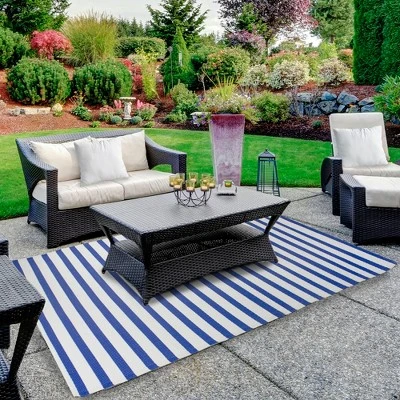 - Blue And White Striped Indoor And Outdoor Area Throw Rug