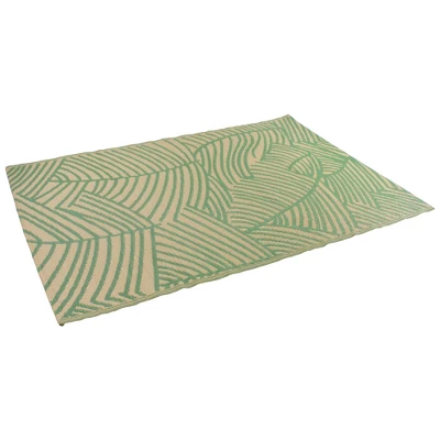 Our green and beige leaf-styled rug features a textured weave that’s super comfortable underfoot. It is mold and mildew-resistant and built to withstand color fading from the sun. It has been designed to hold up exceptionally well in high-traffic areas, whether it is used indoor or outdoor. The flat weave design of this rug melds style with durability, making it the perfect accessory piece to any porch, poolside deck, backyard patio, or indoor space that needs an easy-to-care-for rug.Product features:Color(s): green and beigeShape: rectangularMachine madeOutdoor safeEasy carePile height: flatBacking: noEasy-to-clean, stain resistant, and does not shedMay be used with a rug pad for extra comfort, protection, longevity and safety (not included)Dimensions: 4′ wide x 6′ longMaterial(s): polypropylene
