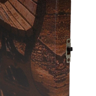 Add a soft touch of light to your decor with this illuminated wall art. Featuring beautiful nighttime scenery in a city park, with the city lights in the background. A wonderful way to decorate a unique corner of your home or office.Product Features:Depicts park at night with city lightsStreet lights are illuminated from behind the canvas by 5 LED lights Comes ready-to-hang with hooks on the back Convenient on/off switch on the side Requires (2) “AA” size batteries – not included Recommended for indoor use only Dimensions: 15.75″H x 23.75″W x .50″D Material(s): canvas/plastic/MDF (medium-density fiberboard)