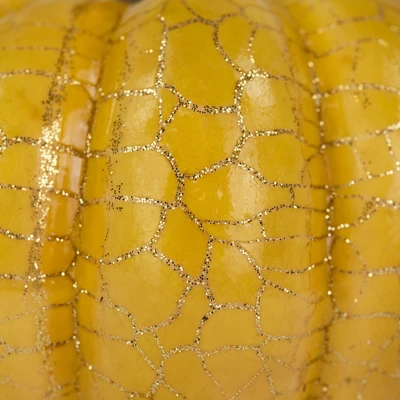 Add a touch of autumn charm to your home decor with this set crackle finish pumpkins in shades of orange, yellow, and brown. These adorable pumpkins are the perfect size for tabletop displays or accenting your fall wreaths and garlands. With their rustic crackle finish, they add a warm and inviting feel to any space, making them a perfect addition to your fall harvest or Thanksgiving decorations. Whether you display them as a set or scatter them throughout your home, these pumpkins are sure to bring the cozy spirit of fall into your living space. Product Features:Set of 3 pumpkins decorationSet comes with orange, yellow, and brown pumpkins Pumpkins are crackled with gold glitter accents Easy to clean, simply wipe with a soft cloth For indoor use only Dimensions: 5″ high x 4″ diameterMaterial(s): plastic/foam